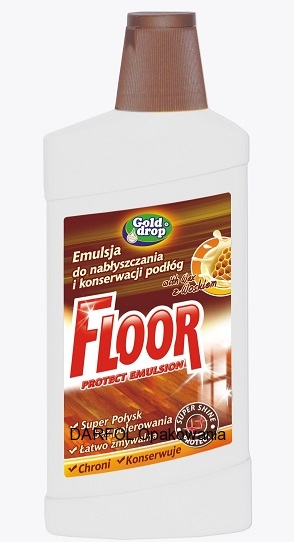 Emulsja należy do nowoczesnych środków do pielęgnacji, nabłyszczania oraz konserwacji wszystkich typów podłóg, takich jak: lakierowane podłogi drewniane, mozaiki, parkiet, panele podłogowe, linoleum, płytki PCV. Emulsja zawiera substancje woskowe i akrylowe, które zabezpieczają powierzchnię przed wnikaniem brudu, zarysowaniem. Taki skład zapewnia bardzo długą żywotność oraz rewelacyjny efekt nabłyszczania, nie zmniejszając jednocześnie antypoślizgowości nawierzchni. Ich wysoka wytrzymałość na ścieranie zapewnia komfort użytkowania na wiele lat. Po nałożeniu NIE WYMAGA FROTEROWANIA i nie pozostawia smug. Wyrób posiada przyjemny kwiatowy zapach, który na długo pozostaje w pomieszczeniu.