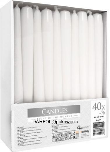 Świece dostępne w kolorze białym, czerwonym i ecrie.